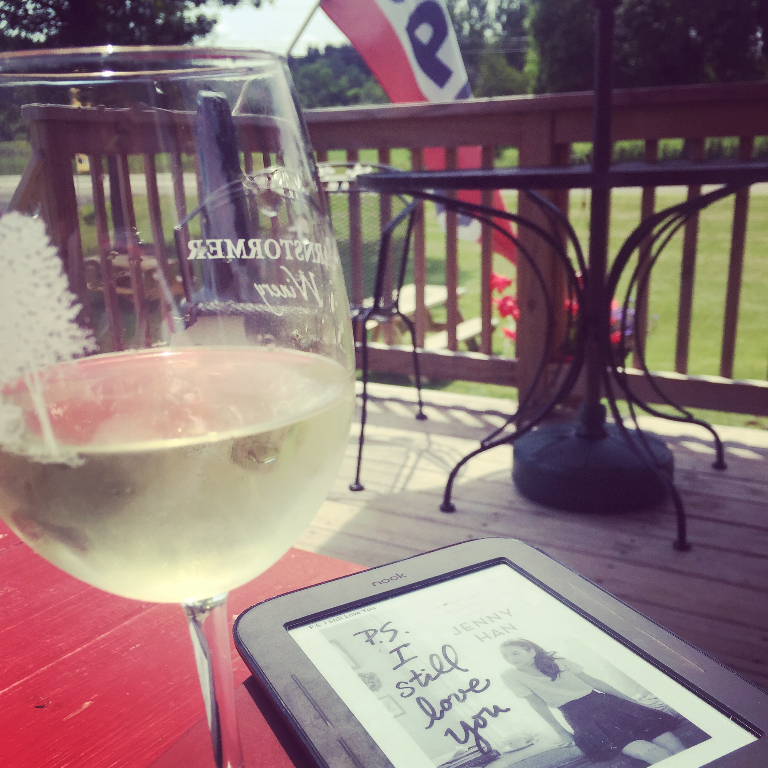 When I felt antsy sitting at home, I drove to visit Husband at his winery and sat on the deck while I read.